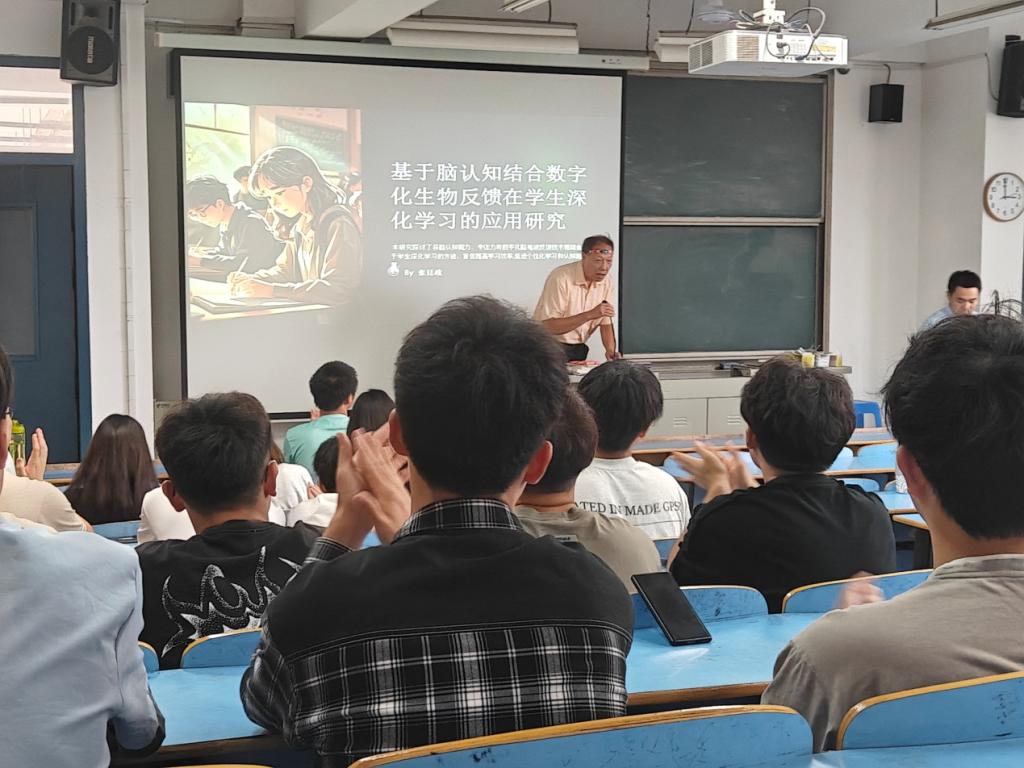 会上,张廷政教授做了题为《基于脑认知结合数字化生物反馈在学生深化学习的应用研究》的学术报告。他以该项研究在某地13所小学的成功试用结论向学生们深入阐述了脑认知科学的核心理论和其在教育领域的潜在应用。他强调,科技的快速发展使我们得以更深入地探索大脑的奥秘,而数字化生物反馈技术则为我们提供了一个实时监测学生学习状态的工具,进而能为学生提供更为精准的学习建议。