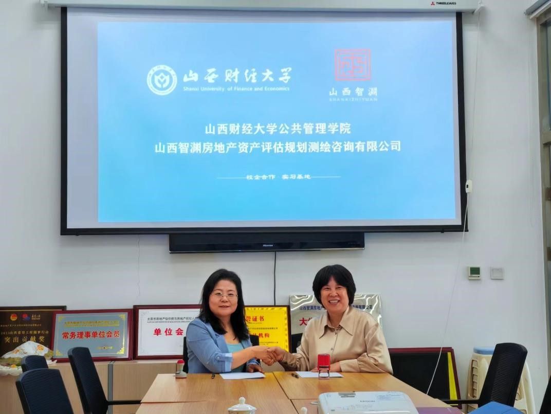 世界杯官方网站院长郭淑芬、山西智渊房地产资产评估规划测绘咨询有限公司总经理杨英,签署了世界杯官方网站实习实训基地协议。