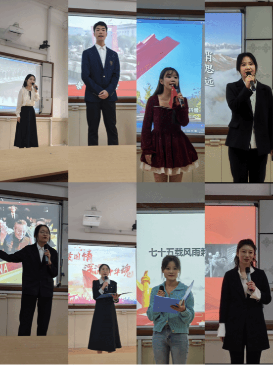 参赛选手们从新中国成立75周年以来的沧桑巨变出发,通过PPT、视频、舞台剧等形式深情演绎了青年学子的爱国情和报国志。王乔华等同学的《七十五载,奔赴升旗之约》以舞台剧形式回顾了新中国75周年的发展历程,从嘉兴南湖红船到革命胜利,从经济落后到经济建设成就显著,凝聚了先辈的热血与梦想,历史镌刻记忆,中华民族伟大复兴是青年一代矢志不渝的追求。该作品最终获得一等奖。本次比赛共评选出一等奖1名,二等奖3名,三等奖5名,优秀奖8名。