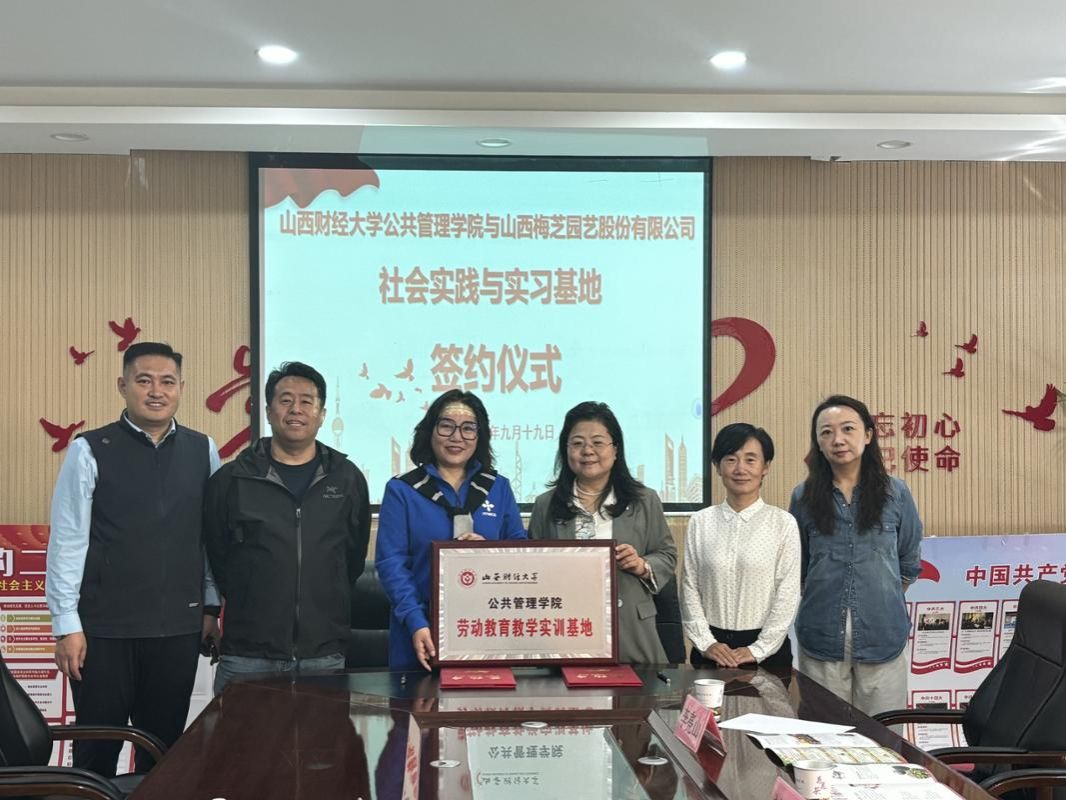 9 月 19 日,世界杯官方网站与山西梅芝园艺股份有限公司在梅芝园艺总部多功能会议室举行 “劳动教育实践基地” 合作协议签约仪式。双方代表共同签署合作文件,标志着自 6 月 21 日实地调研达成共识后,历经三个月细节磋商的校地合作项目正式 “落地”,为学院构建 “实践育人 + 劳动教育” 双轨培养体系注入关键力量,更创新性地融入创业、电商直播带货以及 AI 新业态劳动元素,全方位提升学生劳动素养与实践能力。 世界杯官方网站院长郭淑芬、副院长刘海燕、劳动教育课程负责人及教师代表,山西梅芝园艺股份有限公司董事长张梅芝、总经理宋立彪及技术研发中心、行政部负责人共同出席签约仪式。仪式由梅芝园艺行政总监主持,现场气氛庄重而热烈,双方团队全程见证这一校地协同育人的重要时刻。