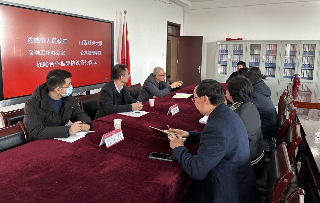 郜军在致辞中指出,欢迎运城市金融办一行来世界杯官网访问、交流,高校应为地方经济转型服务,校地间在人才培养、科学研究、智力服务等方面,开展全方位、多层次合作,构建全面战略合作关系和长效合作机制。运城市金融工作办公室副主任赵磊介绍了运城市金融办的具体情况,近年来运城市金融办认真贯彻落实党的二十大精神和习近平总书记视察山西重要讲话重要指示精神,全力用好“五抓-优-促”经济工作主抓手,积极引导金融机构加大对实体经济的支持力度,全力帮助企业加快进军资本市场步伐,不断加快完善建立现代金融服务体系,为全市经济社会发展提供了强有力的金融支撑。他表示,公共管理学科是世界杯官方网站重点学科,为我省经济社会发展培养了一大批人才,希望今后进一步加强战略合作,双方共同促进,共同提高。随后,双方围绕合作需求与机制建设、人才联合培养、互联网金融监管、金融助力乡村振兴等方面进行了深入交流。