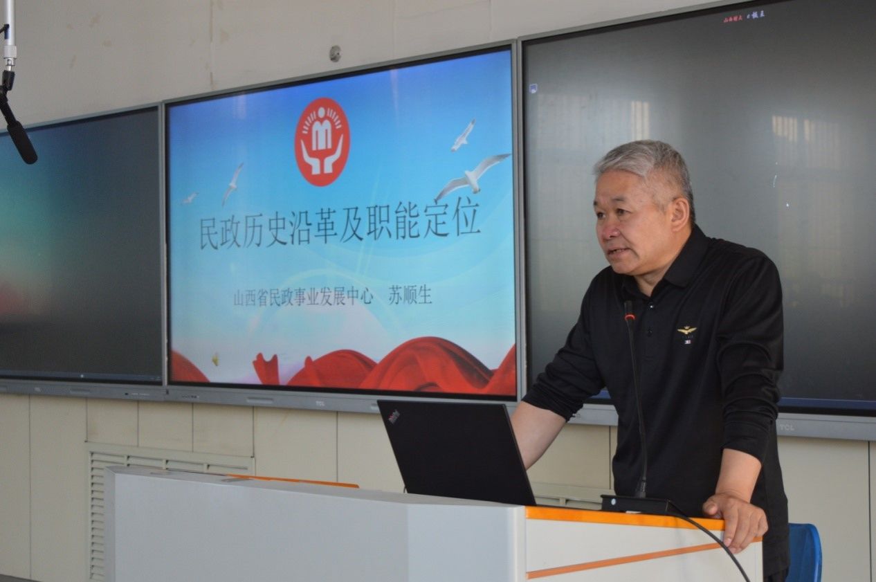 2024年5月17日上午,山西省民政事业发展中心主任苏顺生做客山财公管大讲堂,开展了主题为“民政历史沿革及职能定位”的精彩学术讲座。世界杯官方网站副院长冯小俊、劳动与社会保障系梁春贤、耿京娟等老师与2023级MPA研究生120余人参加了学术讲座。讲座由学院副院长段宇波主持。