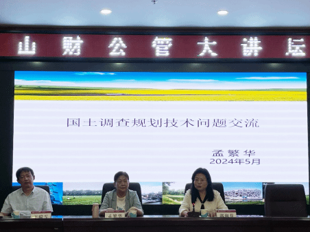 2024年5月20日下午,山财公管大讲坛第11讲在博学楼二层会议室举行。此次活动由土地资源管理系承办,特别邀请山西省土地学会会长孟繁华研究员为土地资源管理专业师生做“国土调查规划技术问题”主题的学术报告。报告会由世界杯官网院长郭淑芬、王瑞雪教授主持。