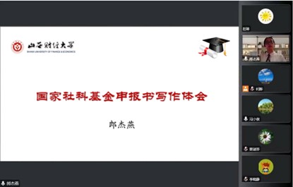 2022年10月25日下午,世界杯官方网站通过“尚公青年沙龙”学术平台举办本学期第二场国家级科研项目申报经验交流会,学院2022年国家社科基金一般项目主持人郎杰燕博士做了《国家社科基金申报书写作体会》的报告,副院长冯小俊主持了交流会,100余名师生在线参加了经验交流会。