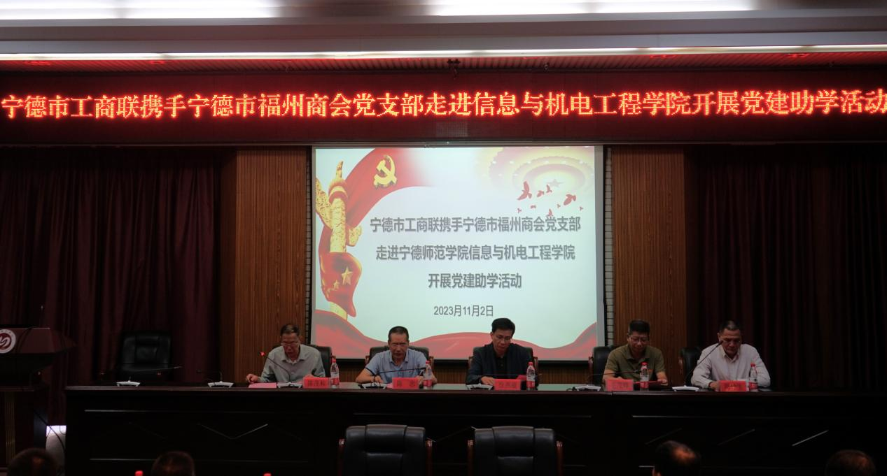 2023年11月2日,宁德市工商联携手宁德市福州商会党支部走进澳门网投十大信誉平台信息与澳门网投十大信誉平台开展党建助学活动在行政楼三楼会议室召开。宁德市委统战部副部长徐燕蕴、宁德市工商联副主席陈忠、宁德市福州商会会长周仲生、澳门网投十大信誉平台学院学工处处长毛茂峰以及宁德市福州商会党支部党支部企业家代表等领导共计60人出席了捐资助学仪式。