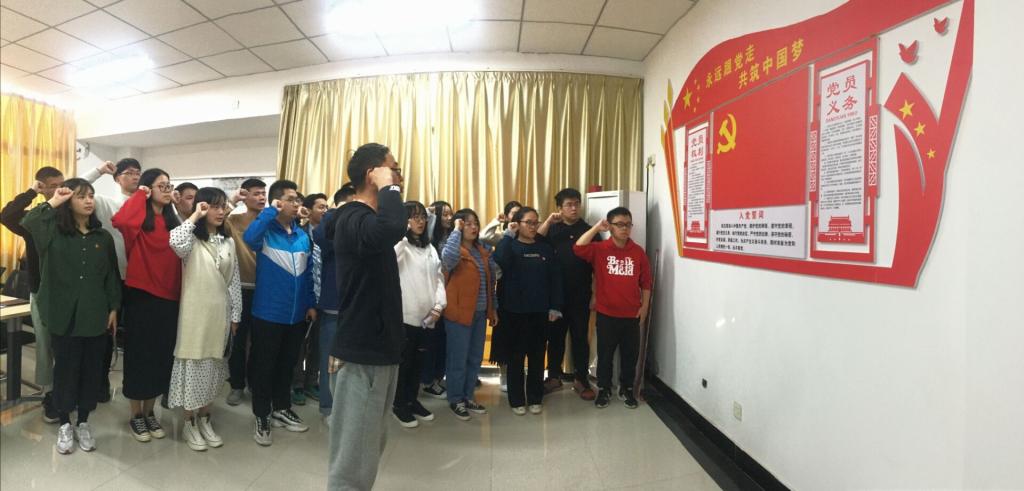 “我志愿加入中国共产党……”,面对鲜红的党旗,高举右拳,字字铿锵,重温入党誓词,牢记初心使命,彰显了信息与澳门网投十大信誉平台学生第二党支部全体党员不忘初心、牢记使命的坚定政治信念。