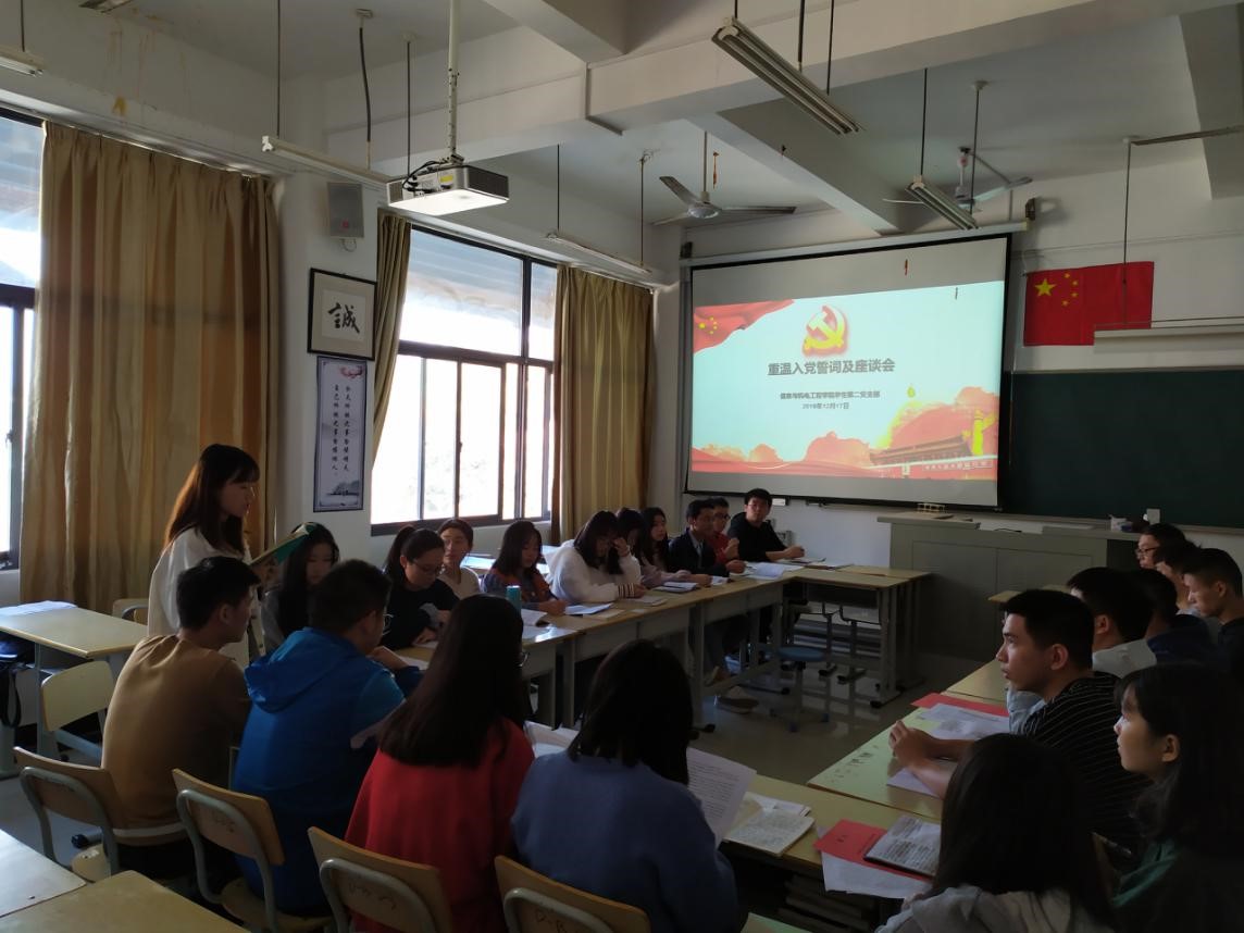 2019年12月17日,信息与澳门网投十大信誉平台学生第二党支部在支部书记王昌雷带领下开展重温入党誓词及座谈会为主要形式“不忘初心、牢记使命”主题教育。