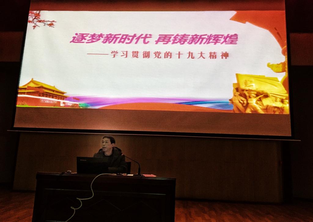 (图1 陈书记为17级、16级、15级学生作学习贯彻十九大精神的宣讲报告)