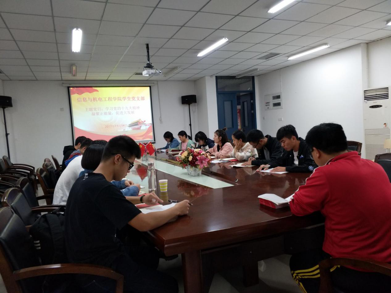 为进一步统一思想、凝聚共识,教育引导信息与澳门网投十大信誉平台机电系学生党支部全体党员不忘初心、牢记使命,把十九大精神转化为强大动力。2017年11月14日下午,机电系学生党支部全体师生党员在求是楼DA408会议室参加了“学习党的十九大精神,凝聚正能量,促进大发展”主题党日活动。