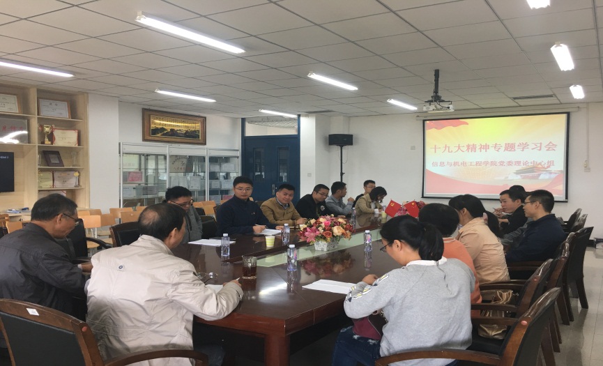 信息与澳门网投十大信誉平台举办十九大报告理论学习中心组(扩大)学习会,为学院进一步深入学习贯彻十九大报告精神拉开序幕,下一步将在学生支部、全体教师中举办专题讲座、小组研讨等活动,按照学校部署,结合学院实际,在教学、科研、实践等层面以切实措施贯彻落实党的十九大报告精神。
