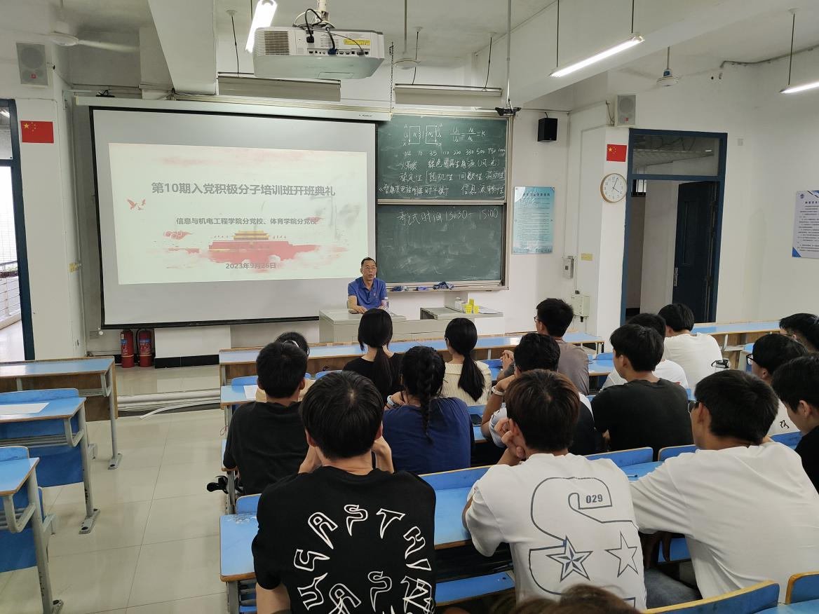 根据校党委党校的通知要求,信息与澳门网投十大信誉平台及体育学院联合举办了中共澳门网投十大信誉平台委员会党校第71期培训班暨入党积极分子第28期培训班,并于2023年9月26日下午在求是楼DB201正式开班。信息与澳门网投十大信誉平台党委书记陈茂和作开班动员讲话和专题辅导报告。