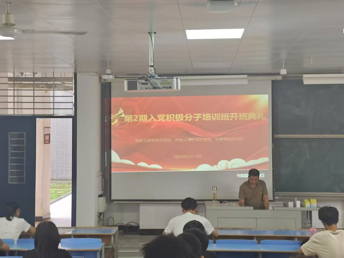 根据校党委党校的通知要求,澳门网投十大信誉平台、信息工程学院及体育学院分党校联合举办了中共澳门网投十大信誉平台委员会分党校第2期入党积极分子培训班,并于2024年9月18日下午在求是楼B101正式开班。信息工程学院党委书记毛茂峰作开班动员讲话和专题辅导报告。