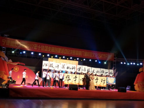 在此次十佳团支部决赛中各团支部各展风采,计算机系团支部亦表现不俗。计算机系14非师1班“感于心,回于行”型团支部以孙小梅同学为代表结合自身的亲情的感悟抒发对父母的感恩之情、以林雪明同学为代表通过班级志愿经历感悟对于社会的责任、以团支部同学父母对十佳团支部建设成果的肯定等等展现了“感于心,回于行”型团支部在一年的十佳团支部的建设中给支部所带来的深刻变化。团支部的展示也给在场观众带来了恩情温暖。15师范班“呼吁正能量”型团支部以提升班级正能量为目标通过改变宿舍卫生、走出宿舍、加强与家人的联系沟通、提高班级体的学习氛围等等行动凝聚班级正能量,为在场观众带来了一股正能量之风。