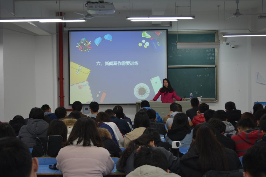 讲座上,陈经纬老师从此次讲座的意义切入,从为什么要写新闻和写作的原则等方面向听众们介绍了写新闻的重要性。讲座过程中还安排了向与新闻工作的相关部门部长提问的环节。