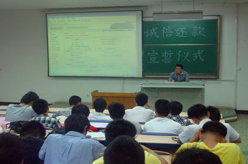 陈祥云经理通过播放《贷款助学 信用助人》宣传片开场,并围绕“何为征信、征信与个人的关系、如何拥有良好信用记录的技巧”做了《征信就在您身边》知识讲座。吴小峰经理则通过图表和举例介绍了生源地助学贷款还款流程和相关注意事项。两位经理结合多年的工作经历,通过身边鲜活案例,生动展示了个人征信系统出现逾期导致生活、工作上出现尴尬局面的情景,使大学生们更了解征信知识、还款流程,充分意识到不诚信的的危害以及个人信用报告的重要性。