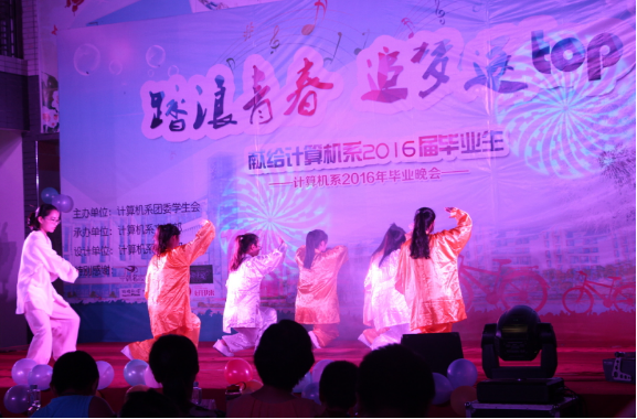 2016年6月4日晚上19:00,计算机系在求是楼大厅举办了以“踏浪青春,追梦逐top”毕业生文艺晚会。系党总支书记郑立文教授、主任张廷政教授、副主任章立亮教授以及毛雁明、缪丰羽等毕业班辅导员出席晚会。