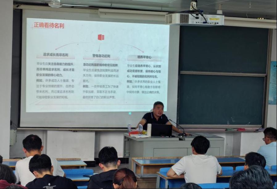 邓科长还深入剖析了贪腐行为给个人带来的沉重代价,包括精神压力、事业毁灭、家庭破裂等,告诫毕业生要时刻保持清醒头脑,坚决杜绝侥幸心理,坚守职业底线。他鼓励毕业生树立正确的名利观,追求成长而非单纯的名利,将职业价值放在首位,适度追求物质回报。