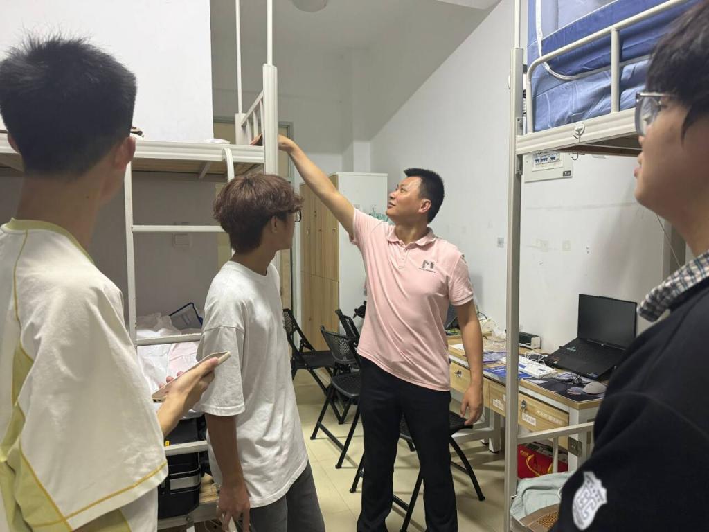当天晚上,学院领导、专业带头人及辅导员走进新生宿舍,与同学们亲切交谈,细致询问饮食住宿适应情况与入学感受。交流中,既鼓励新生借助学生会、班级助理等平台培养自立自理能力,树立远大理想,科学规划大学生涯;也着重强调宿舍用电、外出交通及人身财产等安全事项,为新生校园生活筑牢安全防线。