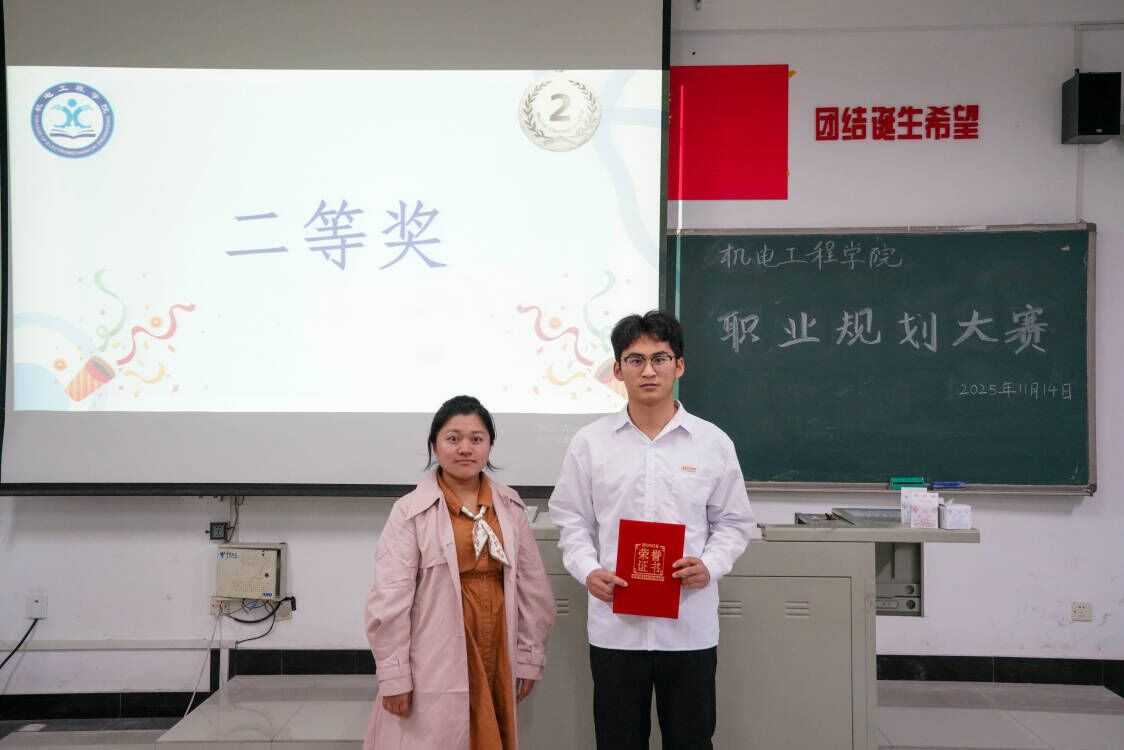 来自不同专业的14位参赛选手依次登台亮相。他们以PPT为载体,凭借自信从容的台风、逻辑清晰的表达,从职业理想锚定、自我认知剖析、行业趋势分析到实施计划,全方位展现了对未来职业道路的深度思考。选手们的规划既扎根专业赛道,聚焦机电领域核心技能深耕,又充满了对新兴产业的探索与展望,充分彰显了他们职业追求与青春风采。