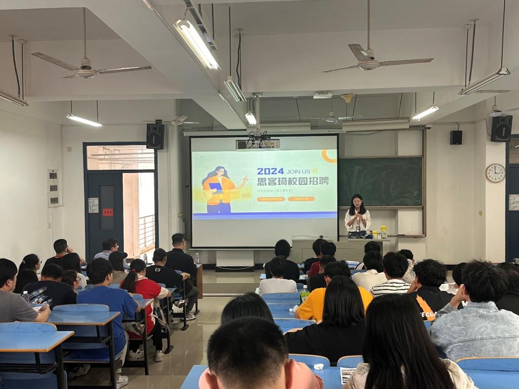 本次宣讲由宁德思客琦智能装备有限公司人事部的游夏妍主持,介绍了思客琦的发展历程与主要制造方向,展示了公司各岗位特征与面向专业人才的需求。公司视觉研发部的负责人王兴鹏介绍了公司主要负责项目和具体工作内容。同学们认真倾听,有70余位来自澳门网投十大信誉平台不同专业的同学参加活动,多名学生会后停留递交简历和询问公司细节,同学们反响热烈。