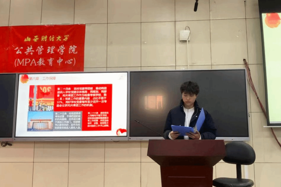 各级团学骨干作深入学习交流:2021土地资源管理1班詹舒雅领学了《中国共产主义青年团支部工作条例(试行)》,对团的组织体系建设、团员队伍建设、团干部队伍建设、青年人才队伍建设、团的纪律建设等内容作全面阐述,号召大家要认真学习领会习近平新时代中国特色社会主义思想,提高对党的基本理论、基本路线、基本方略的领悟力,做有理想、敢担当、 能吃苦、肯奋斗的新时代好青年;2022行政管理班梁浩田介绍了《中华全国学生联合会章程》,再次明确中华全国学生联合会章程行动纲领及其基本任务,动员大家要坚持党的领导,争做中国特色社会主义事业要求的合格人才,筑牢对党忠诚、坚定理想信念、发扬斗争精神、勇于挺膺担当,充分激发新时代山财青年的青春激情;2022行政管理研究生班张子瑞同学根据《世界杯官方网站深化学生会(研究生会)改革的实施意见》,提出要加快落实学校党委的领导机制和共青团的具体指导责任,加强校级学生会与学院学生会的工作联动,注重自身素养能力提升,建立规范化理论学习制度,加强学生会(研究生会)成员政治学习的系统性、思辨性、针对性。