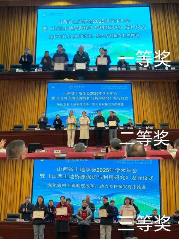 会议举行了《山西土地资源保护与利用研究》新书发行仪式,该书是学会过去八年以来课题成果的总结,为山西省土地资源管理与研究提供了宝贵参考和借鉴。随后,会议宣读了学会年会优秀论文表彰决定,本次会议共评选出优秀论文46篇,其中世界杯官网师生共获得2项二等奖,4项三等奖,14项优秀奖。