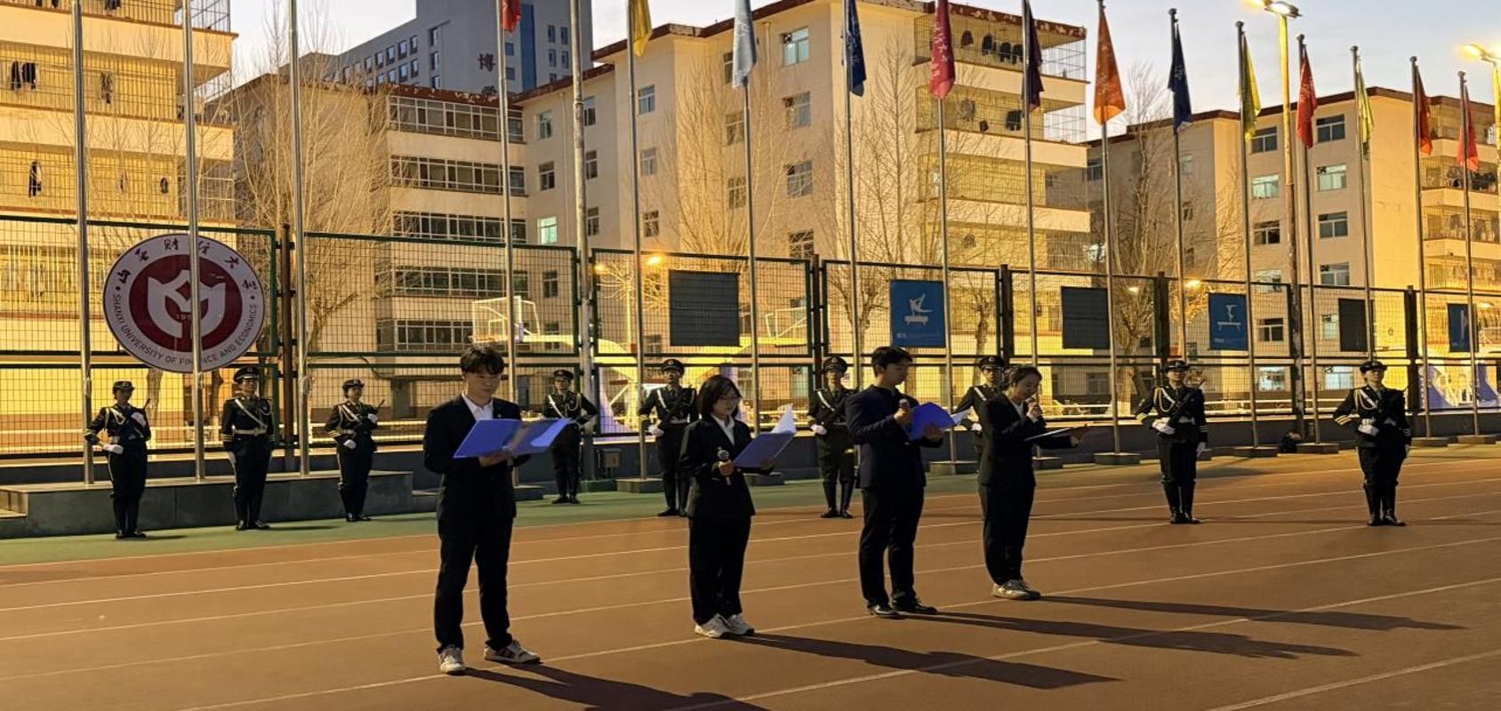晨光初绽,红旗飘扬。12月8日清晨,世界杯官网于坞城校区操场隆重举行升旗仪式。学院领导、全体辅导员及在校生共同参与,仪式由2023级劳动与社会保障班武悦同学主持。