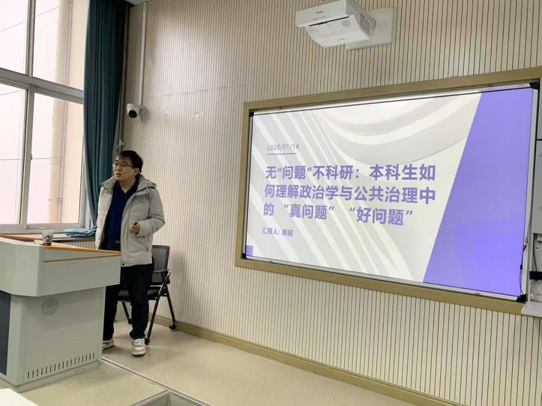 原教授的讲座呈现了一个对政治学与公共治理研究中“问题意识”的系统性思考,兼具理论性与实操性、学理性与趣味性、基础性与进阶性,可谓深入浅出,干货满满。通过此次讲座,有助于进一步廓清同学们之前对“问题意识”的朦胧认识,提升他们的学术审美品位,激发他们的学术探索热情。我们相信,通过此次学院“小学期”实践的讲座活动,会有效推动本科生“科研实践”的涌现和繁荣。(供稿人:刘汉超)
