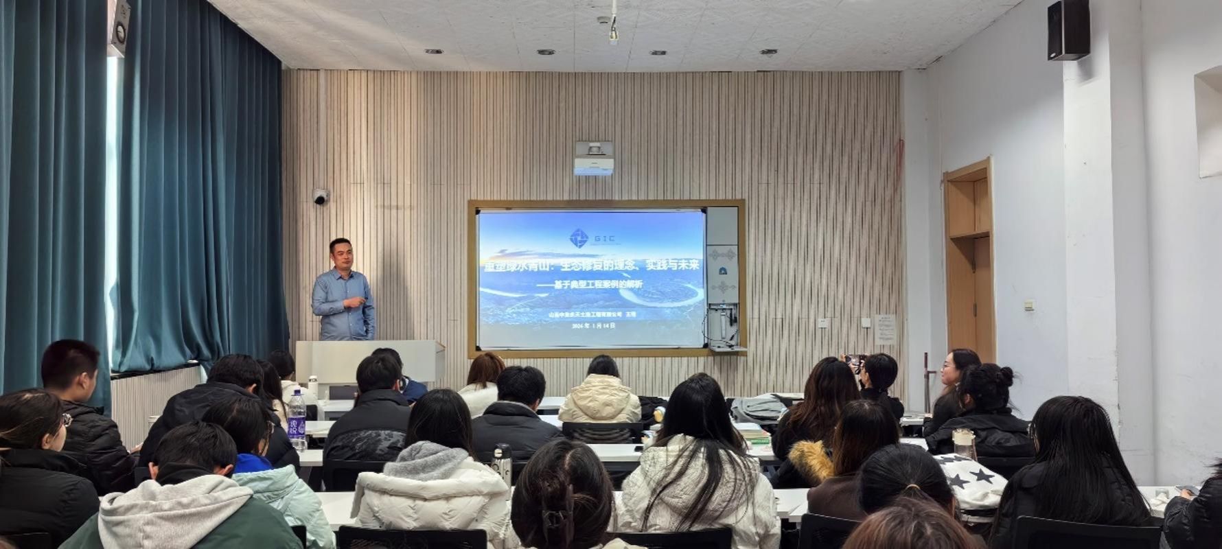 1月14日下午,山西中地永天土地工程有限公司总工程师兼测绘地信所所长王翔做客世界杯官网小学期“尚公实务讲坛”,为2024级土地资源管理专业本科生作了题为:“重塑绿水青山:生态修复的理念、实践与未来”的实务讲座。讲座由土地资源管理专业教师原野主持。