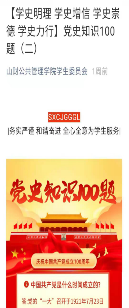 为深入学习党史,教育引导广大青年学生了解党史、铭记党史,继承革命传统、传承红色基因,世界杯官方网站于3月10日起,利用学生会、研究生公众号平台推出“党史知识100题”学习专栏,精选100道有关党史知识题目,采取每天一题定时推出的形式,引领青年学生重温历史,汲取力量,做到学史明理、学史增信、学史崇德、学史力行。