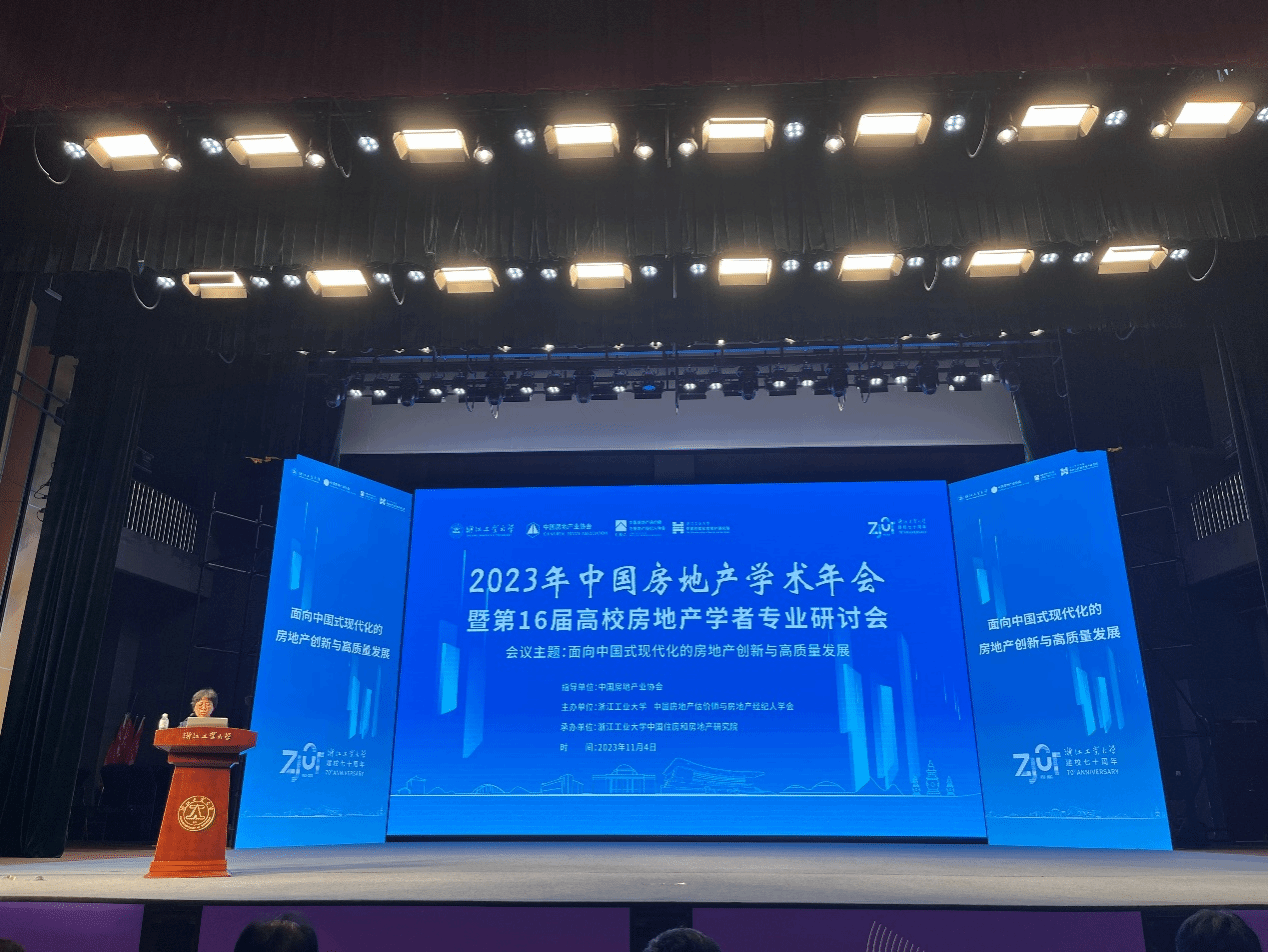 2023年中国房地产学术年会暨第16届高校房地产学者专业研讨会于2023年11月4日在浙江工业大学成功召开。本次会议由浙江工业大学、中国房地产估价师与房地产经纪人学会联合主办,浙江工业大学中国住房和房地产研究院承办,会议主题为“面向中国式现代化的房地产创新与高质量发展”。世界杯官网林超副教授、刘宝香老师,硕士研究生赵佳庆、徐凤琪参会。