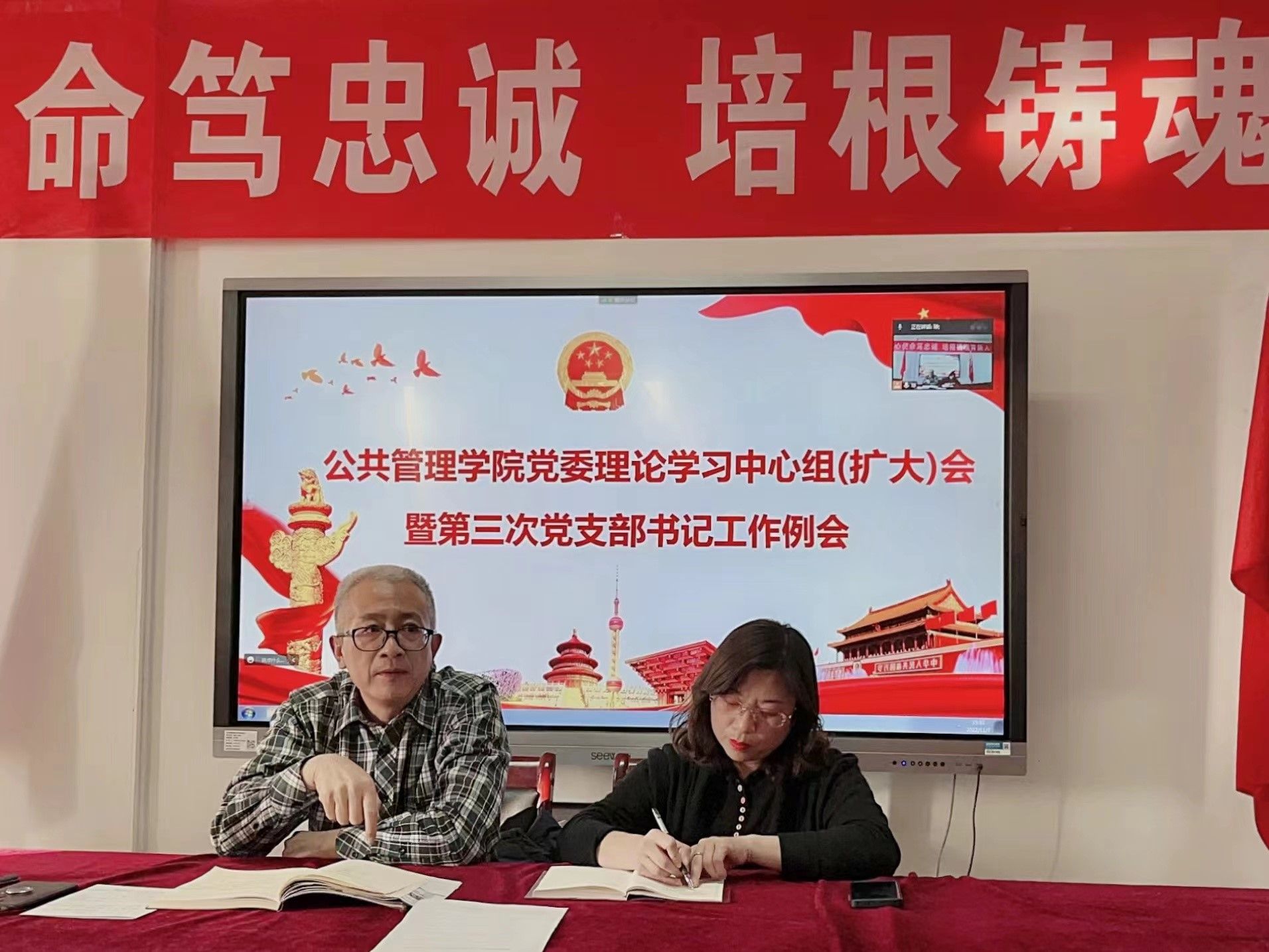 11月7日下午,世界杯官方网站会议室气氛热烈。学院党委采取线上线下相结合的方式,组织召开中心组理论学习(扩大)会议暨第三次党支部书记工作例会,学习贯彻党的二十大精神,安排部署学院党委换届工作。会议由党委书记郜军主持领学,学院班子成员、专职组织员,党支部书记、支部委员,教研室主任,团学干部和学生党员代表参加学习。