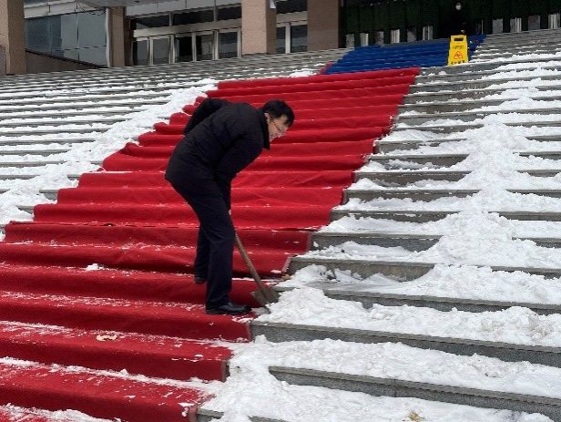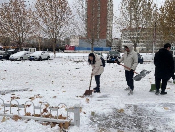 下午两点,大家齐聚立信楼门口阶梯,用除雪工具将台阶上和路面上的积雪清理得干干净净,为世界杯官网师生开辟出一条条安全的路径。在此过程中,同志们满怀热情,自由组合,齐心协力,充满干劲,以极高的效率出色地完成了除雪任务。在热火朝天的劳动中,大家不畏严寒,奋勇向前,争当先锋模范的带头兵,在深耕奉献精神的过程中,充分发挥中国共产党乐于奉献、服务群众的优良传统,发扬党全心全意为人民服务的宗旨。