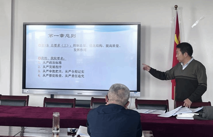 党委书记郜军就本学期入党积极分子培养、发展对象培养、党员发展工作作出安排。他谈到,要将党员发展作为学院常态化工作,做到“三严”——严格、严肃、严密,将从严要求落实到发展党员全过