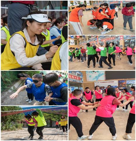 实践教学(素质拓展)活动包括趣味热身、破冰建队、牵手巡游、急速六十秒、趣味运动竞赛、驿站传书和总结交流等项目。趣味热身化解了同学们初次接触的生疏,用拍背、捏肩、抓手指等小游戏消除隔阂;破冰建队让大家合作取队名、想口号、画队旗、编队歌,迅速调动了大家的积极性;牵手巡游增强了小组成员之间的默契程度,培养了同学们团结协作的精神;急速六十秒充分展现了同学们的集体智慧,同时让大家了解到分享的重要性;趣味运动竞赛中大家分工合作,共同完成比赛项目,锻炼了同学们的分工合作能力;驿站传书增强了团队的整体性,提升了同学们的管理沟通能力。每一项活动最后,教练对活动项目进行深度点评,各队代表也分别分享了自己的收获和感悟。